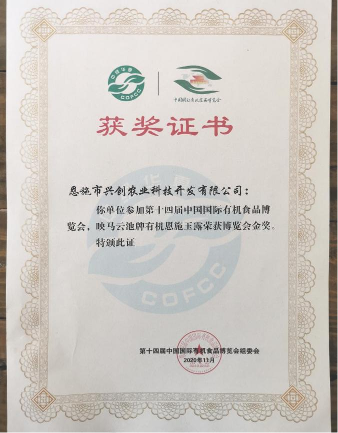 自2013年起,我们每年坚持送检国际权威检测机构SGS,从最开始的481项农残检测,到如今的626项农残检测,我们一直都全项通过;2017年我们开始申请有机检测,连续三年都通过了认证机构的过程监测与结果检测,于2020年,我们正式获得了470亩茶园的茶青以及生产车间的双有机认证;有机茶园基地被授予“农业农村部科技示范基地”;园区被授予省农业厅“十佳田间学校”、全国“百佳田间学校”;2022年公司被认定为“国家高新技术企业”;2020年荣获恩施州硒茶大赛玉露组金奖;2020年荣获“第十四届中国国际有机食品博览会”金奖;2021年,项目荣获恩施市双创大赛冠军;2022年荣获武汉茶博会金奖等一众奖项或表彰。