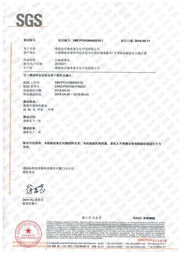 同时沉瑜香香灸通过了瑞士SGS官方检测认证,使用过程中无有害气体释放。