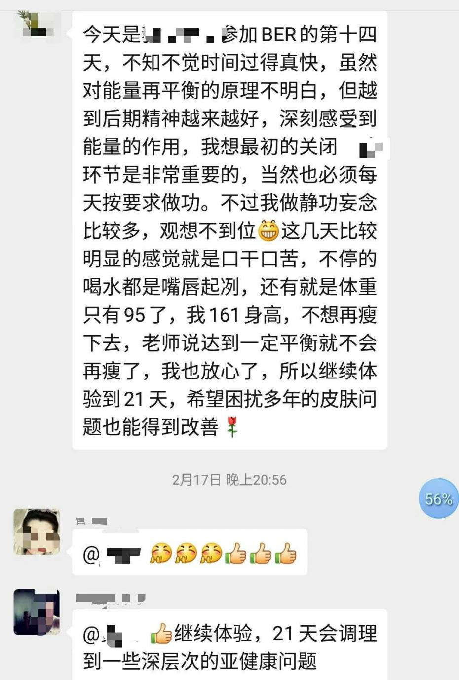 学员2、女,49岁,BER21天,困扰20年的神经衰弱得到彻底改善,停掉了服用18年的保健药,虚弱、胸闷气短、烦躁等症状明显减轻,以前定了很多次运动、旅行的规划,终于可以实施了。