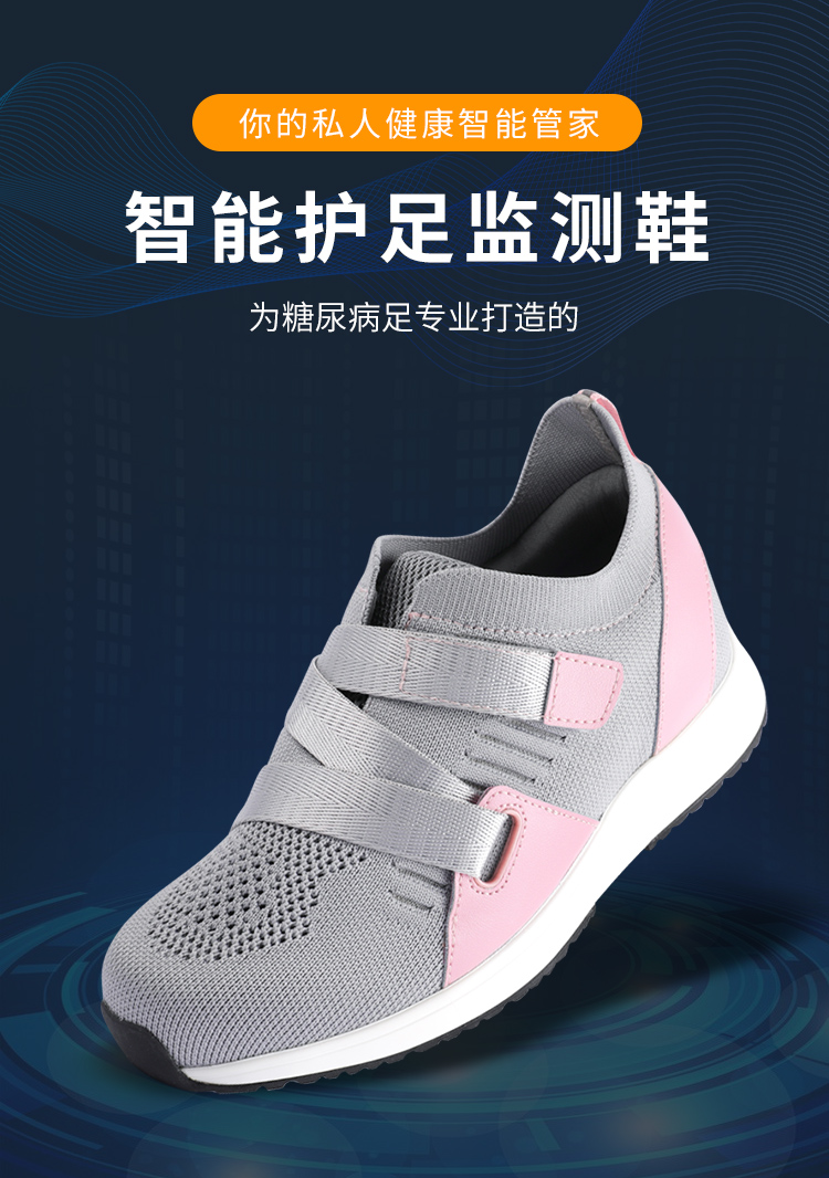 中山优感科技生产的糖尿病智能护足鞋是一款专门针对糖尿病足的智能鞋,它能够有效利用柔性压力传感器对糖尿病患者足底不同部位的压力进行持续实时监测、预防糖尿病人的足部并发症,并且进行有效护理。