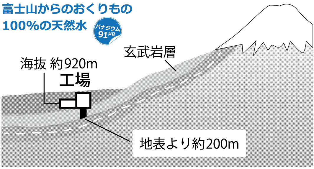 普瑞咪雅(Premium Water)采水地位于日本富士箱根伊豆国立公园内,水脉位于富士山地下约200米处,取水口为Premium Water, Inc. 自有水井,不易受任何地表环境变化的影响。根据日本株式会社地球科学研究所2016年7月的调查,普瑞咪雅(Premium Water)是由至少60年前降落在富士山的雨雪水渗透到地下而形成的天然水。经过60年以上富士山玄武岩层的漫长洗礼,赋予了她特殊的韵味。