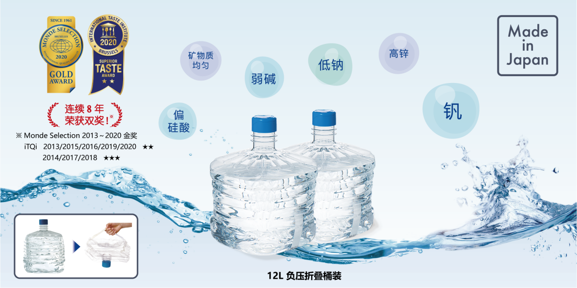 “水”的口感取决于其溶解氧的含量,Premium Water自始至终坚持100%“非加热处理”,不损失一点天然矿泉水的原始风味,竭尽全力为您提供来自富士山的美味。