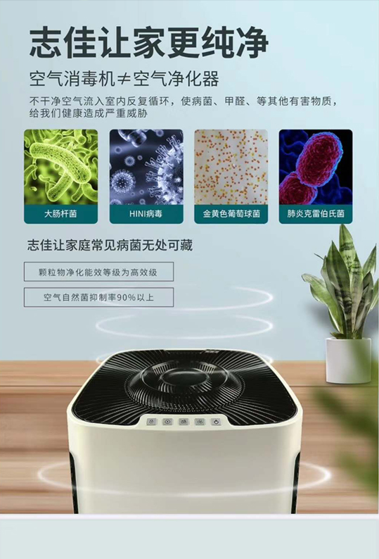 1、除菌,等离子消毒:高活性等离子流,主动出击,抑制菌活性,通过实验实测,志佳A88等离子空气消毒机能有效击碎并包裹细菌使其窒息,达到杀菌隔离的作用。