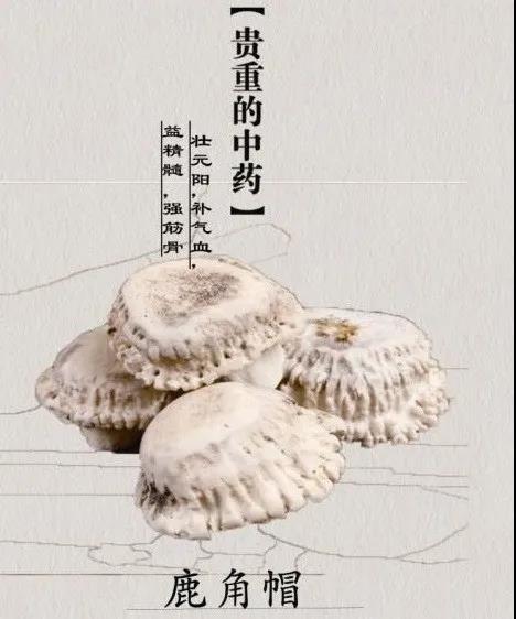 鹿角帽为鹿科动物梅花鹿或马鹿锯茸后翌年春季脱落的角基,性味咸,微温,无毒,具有行血,消肿,益肾的功效,鹿角始载于《神农本草经》,并列为上品。《本草纲目》中称其为斑龙角,无毒,用于骨虚劳极、乳痈初起的治疗。鹿角的成分中主要含有胶质25%,磷酸钙50-60%,碳酸钙及氮化物等。