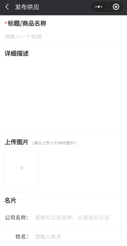 供应区:供应商可以在这个区域内留下您企业能够提供的产品信息,图片等,然后填写您企业的名称,联系人,手机号,方便采购商联系您。