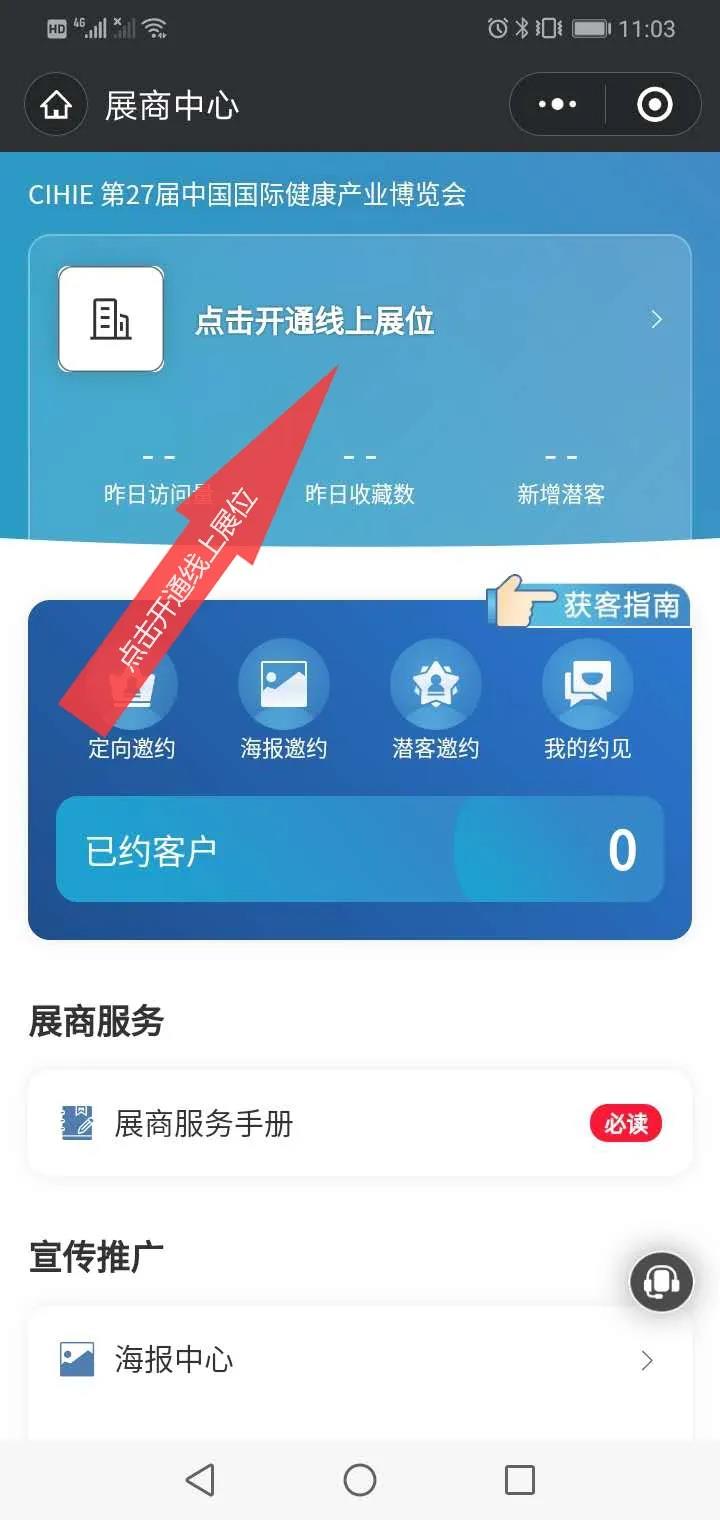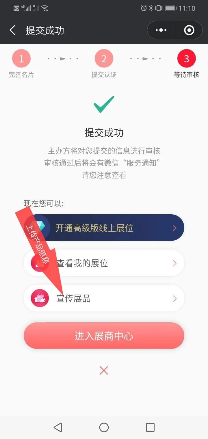 第三步:进入【展商中心】→点击【点击开通线上展位】→输入公司名称→创建展位
