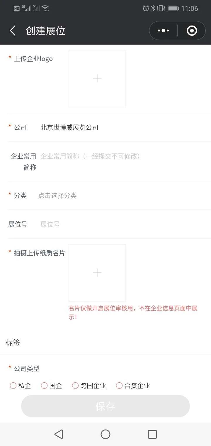 第五步:点击展位管理可以更改企业信息,点击展品管理可以上传展品