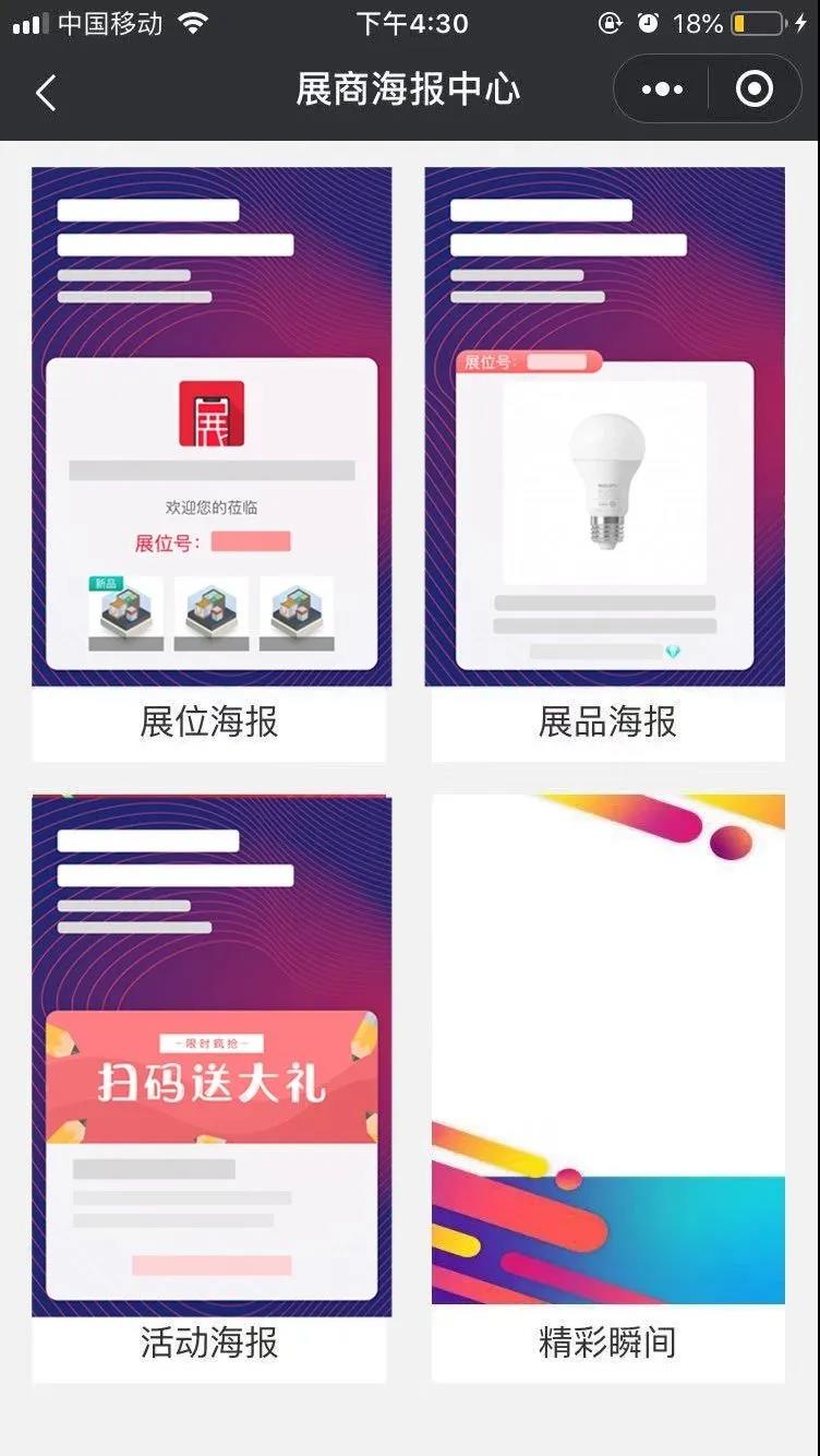·丰富的海报模板,微信群、朋友圈一键分享,客户邀请更快捷展商中心的海报邀约功能,提供了多类型的海报模板,您可轻松一键生成展位、展品、活动海报图片,保存后可发布到朋友圈等社交网络,增加参展曝光,扩大客户邀约。