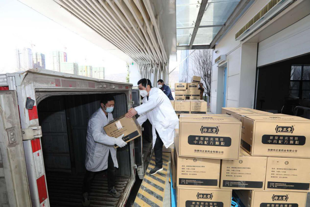 2月17日,劲牌3天赶制完成的2万副“肺炎1号”治疗中药配方颗粒免费送达全省50个治疗点。