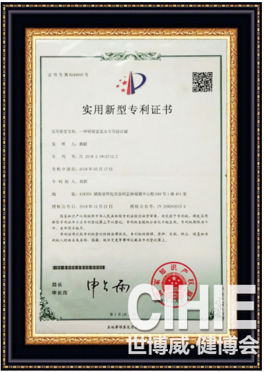 即云富氢水攻克了高浓度桶装氢气水的难题,自主研发了一种特殊的储存罐并获得了国家发明专利(专利号:ZL 2018 2 08 15712.2),是国内目前唯一取得这项成果的。即云富氢水储存罐采用压力出水,该储存罐能将浓度达到饱和的氢气水(1500ppb--2200ppb)保存一个月以上浓度丝毫不变,且不会造成二次污染,并获得了国家发明专利。这个技术的发明,为氢气水实现桶装化生产、让氢气保建进入干家万户、造福于民扫除了最大障碍。